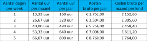 Prijsberekening per maand: 40 weken x 4 x aantal dagdelen x €11,46 / 12